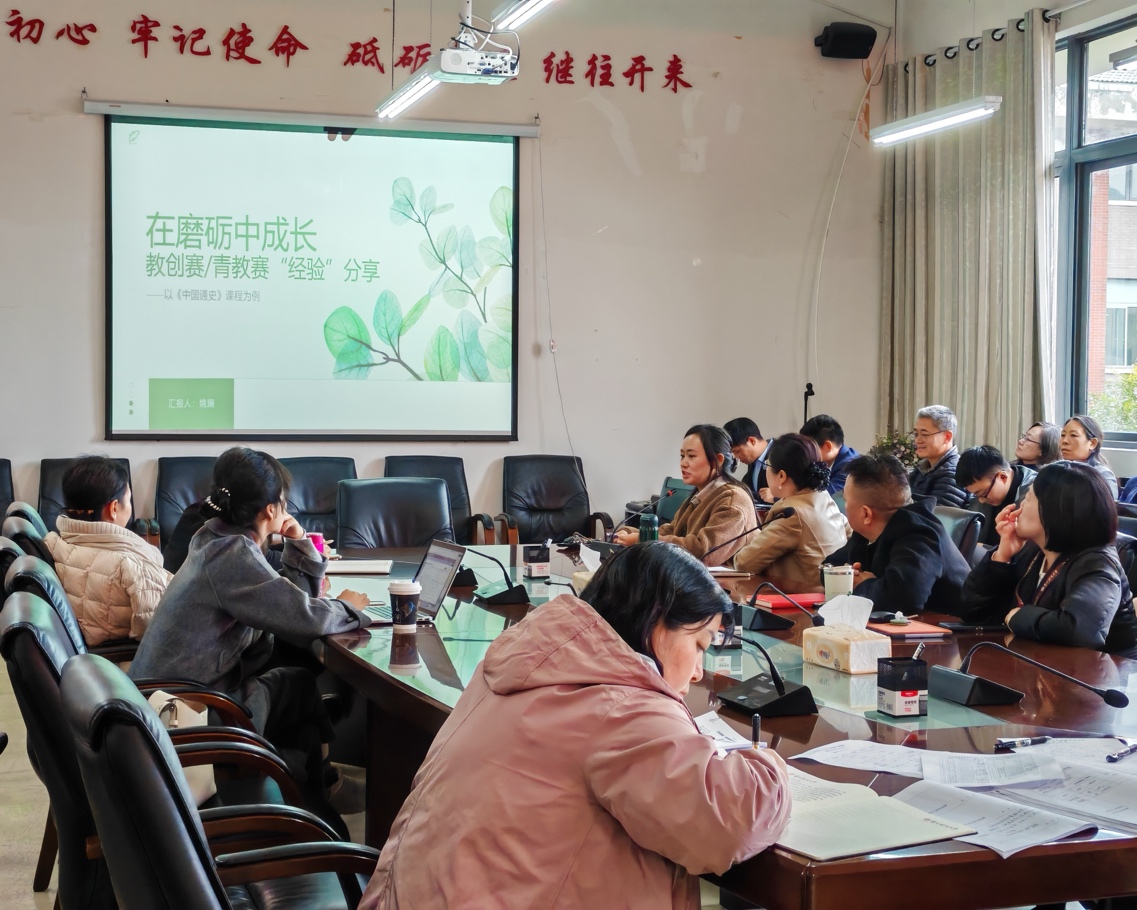 在自由交流环节,各位老师围绕“黔学文化融入课堂教学的路径”“以赛促教提升课堂质量”等主题展开热烈讨论。姚斓老师以“教创赛与青教赛经验分享”为题作了生动报告,深入剖析教学竞赛与课堂创新的融合路径。现场气氛活跃,思维碰撞频繁,参会教师纷纷表示收获良多。