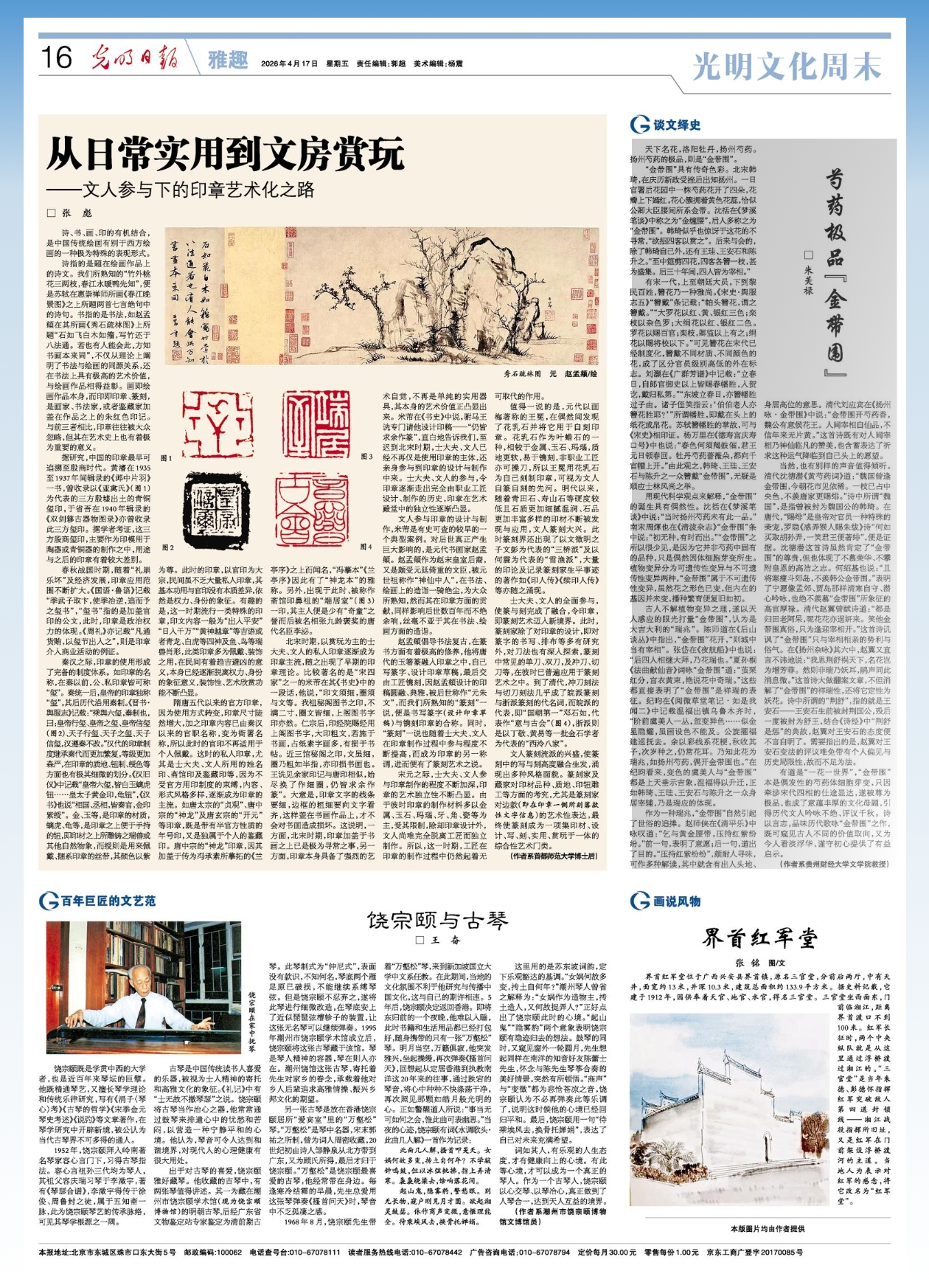 本网讯(文学院 彭家佳 图文报道)2026年4月17日,《光明日报》(光明文化周末版)发表我院教师朱美禄教授的文章《芍药极品“金带围”》。