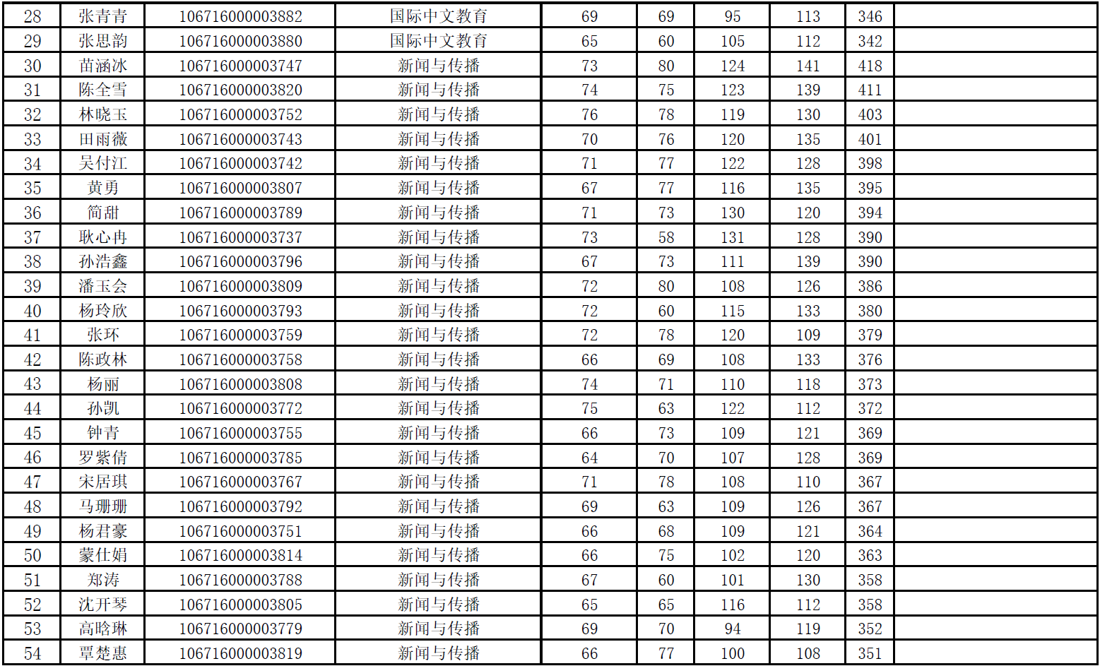文学院2026年硕士研究生招生考试一志愿复试名单